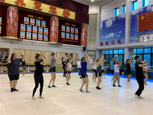 交流时间虽然短暂,但是来自美国的交流生们仍能体验到充实而愉快的训练内容。开始,王宏老师讲解了日常的训练方法和体系,健美操世界冠军赵明带领学生一起做中国风的热身活动。此外,来自美国的交流生们也体验了校代表队平时体能训练的方法TABATA。交流生与队员们互相鼓励加油,气氛热烈。随后,校健美操代表队的队员们为交流生们进行才艺展示,并送上了精心准备的小礼物,为本次交流活动画上圆满句号。
