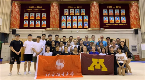 校健美操代表队与明尼苏达大学学生进行训练交流