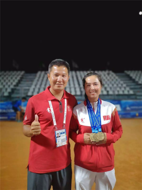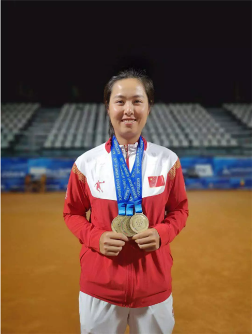 赛事热点 | 我校运动员叶秋语独揽世大运会三枚奖牌 时间:2019-07-14 来源:作者: 第30届世界大学生夏季运动会网球比赛今天落下帷幕。我校学生叶秋语获得女子双打金牌、女子团体金牌和混合双打铜牌,一人独揽本届比赛三枚奖牌!
