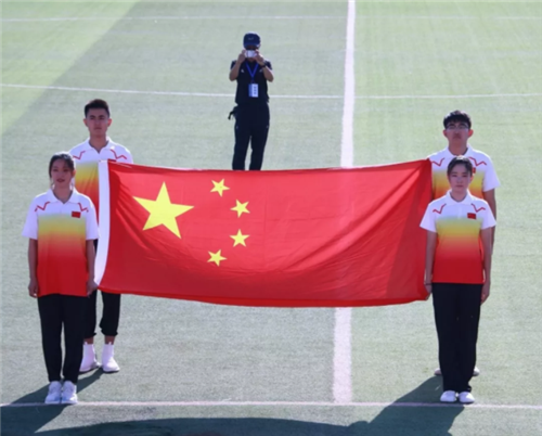 我校代表团旗手由2019全国田径大奖赛肇庆站男子110米栏冠军孙振江担任。